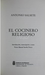 Salsete, Antonio. El cocinero religioso. - [Pamplona] : Gobierno de Navarra, 1995. - 2 v. ; 16 cm. Contiene: v. 1. [Reproducción facsímil del manuscrito de finales del siglo XVII] v. 2. Introducción, transcripción y notas / Victor Manuel Sarobe Pueyo