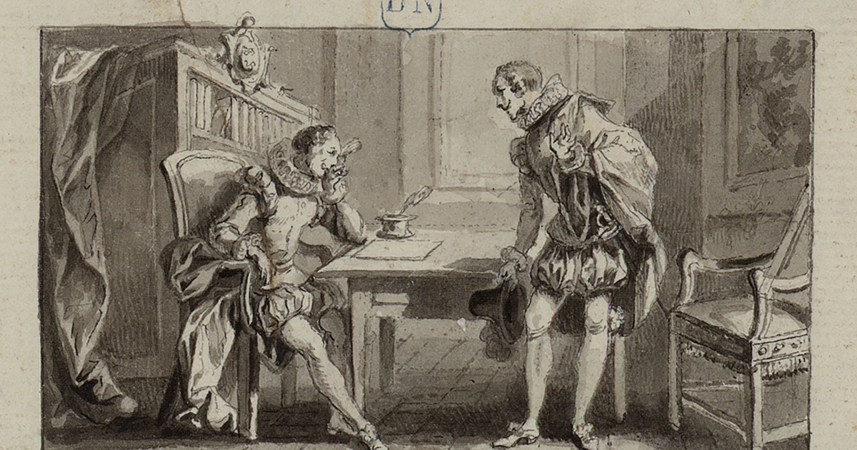 Dibujo preparatorio para grabar, destinado a ilustrar la edición del Quijote publicado por Gabriel de Sancha en 1797-1798 y anotado por Pellicer (pte. I, t. I, p. CCXXI). El grabado fue realizado por Juan Moreno Tejada en 1797.