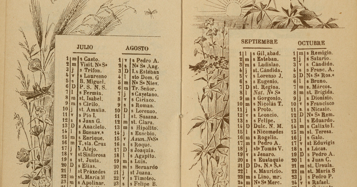 Los calendarios están ilustrados con diversos motivos florales. Las flores (rosas, pensamientos, orlas, etc.) son los motivos más utilizados para ilustrar los calendarios de dos fábricas de chocolates (Evaristo Juncosa y Compañía Colonial) un fabricante de relojes (Carlos Coppel), una farmacia (Ramón Roset) o un perfume (Floramye). En las hojas de los almanaques está impreso el calendario del año en curso, normalmente con el santo oral y la publicidad de los productos y establecimientos comerciales donde se menciona la fecha en que se funda una casa, la variedad y calidad de sus productos o bien información de interés general como la " Guía general de Barcelona" que se incluye en el calendario de "Chocolates Juncosa". Estos calendarios eran un obsequio del fabricante o del comerciante a sus clientes por su fidelidad y al mismo tiempo se convertían en un vehículo publicitario de sus productos y comercios. Así, junto al nombre de la marca o del comercio, aparecen frases como "Recuerdo de la Compañía Colonial a sus favorecedores", "Regalo de la casa Evaristo Juncosa a sus clientes", o también la frase de felicitación "Felicidades para el año 1906", que aparece en el calendario de la Librería Escolar de Antonio Pérez.