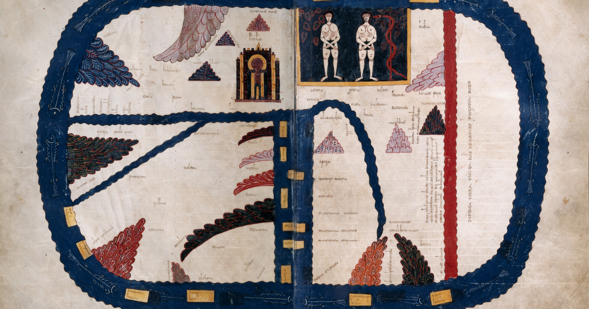 Destaca su mapamundi en el que se incorpora un nuevo continente, la denominada Terra incógnita. Se incluye este mapa del mundo para ilustrar un texto que versa sobre los viajes que hicieron los apóstoles, como muestra de la difusión del cristianismo con carácter universal. El contorno del mapa representa el océano exterior que entonces se suponía que rodeaba las tierras emergidas. Teniendo en cuenta la finalidad religiosa de estos mapas, en la parte superior, correspondiente a Asia, está situado el Paraíso Terrenal con Adán y Eva, y a su lado aparece destacada la ciudad de Jerusalén, centro del universo cristiano. A lo largo de la Edad Media este tipo de representaciones cartográficas cristianas se extendieron en los ambientes monásticos y universitarios de toda Europa, por ello ha sido denominada cartografía culta. Pero el momento en que aparece una verdadera representación cartográfica es ya en la Baja Edad Media, en el siglo XIII, con los portulanos o cartas portulanas.