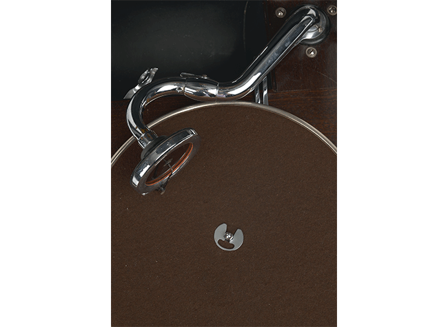 En el interior de la tapa aparece impreso el logotipo de la marca acompañado de la inscripción. Imagen de un perro de pelo blanco y orejas marrones encuadrada en un rectángulo enmarcado, que atiende al sonido que sale por la bocina de un gramófono: "La Voz de su Amo / MARCA REGISTRADA / COMPAÑIA DEL GRAMÓFONO S.A.E.".