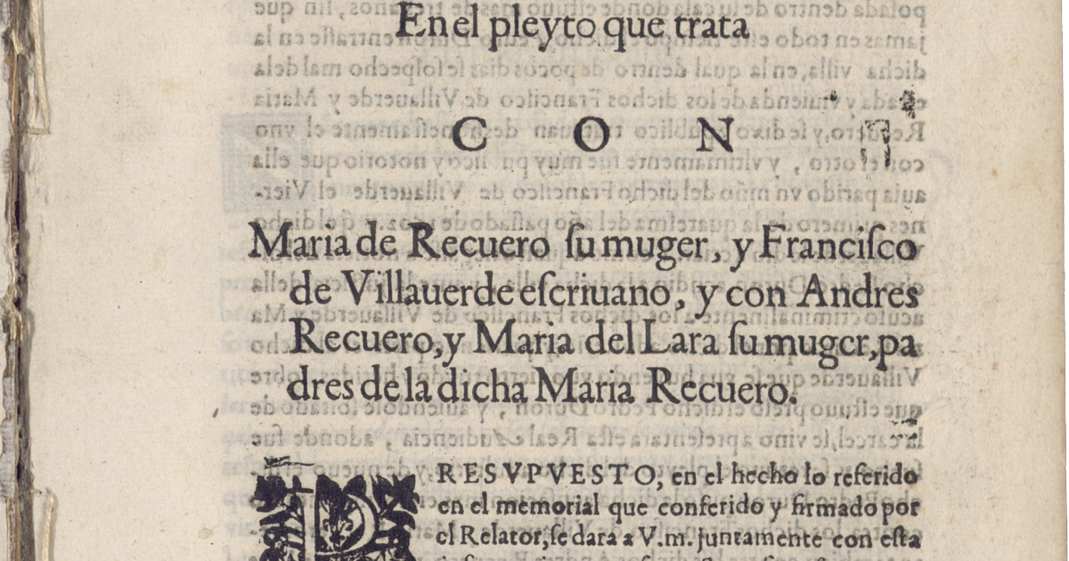 De Pedro Duron en el pleyto que trata con Maria de Recuero su muger, y Francisco de Villauerde escriuano, y con Andres Recuero, y Maria de Lara su muger, padres de la dicha Maria Recuero