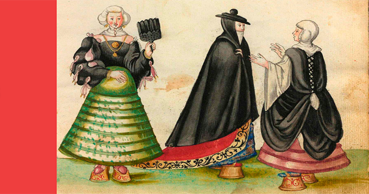 Gracias a estos recursos y a la bibliografía propuesta, cualquier persona interesada en participar podrá aportar información de cada ilustración en el proyecto “El Códice de Trajes: viaje a la indumentaria del siglo XVI”. En las páginas de este manuscrito se puede encontrar, por ejemplo, un conjunto de burguesas españolas representadas con las faldas de verdugado visto y chapines, dos prendas muy típicas de la vestimenta española; una procesión de los Caballeros de la Orden del Toisón que se celebró en la catedral de San Miguel y Santa Gúdula en Bruselas con un joven emperador Carlos V, o la representación de mujeres prusianas con enormes capas copiadas del díptico del Maestro Michiel que se conserva en el Museo de Nurenberg. Con la contribución colectiva de cada participante se creará una galería interactiva de la indumentaria del siglo XVI a partir de este ‘Códice de Trajes’.