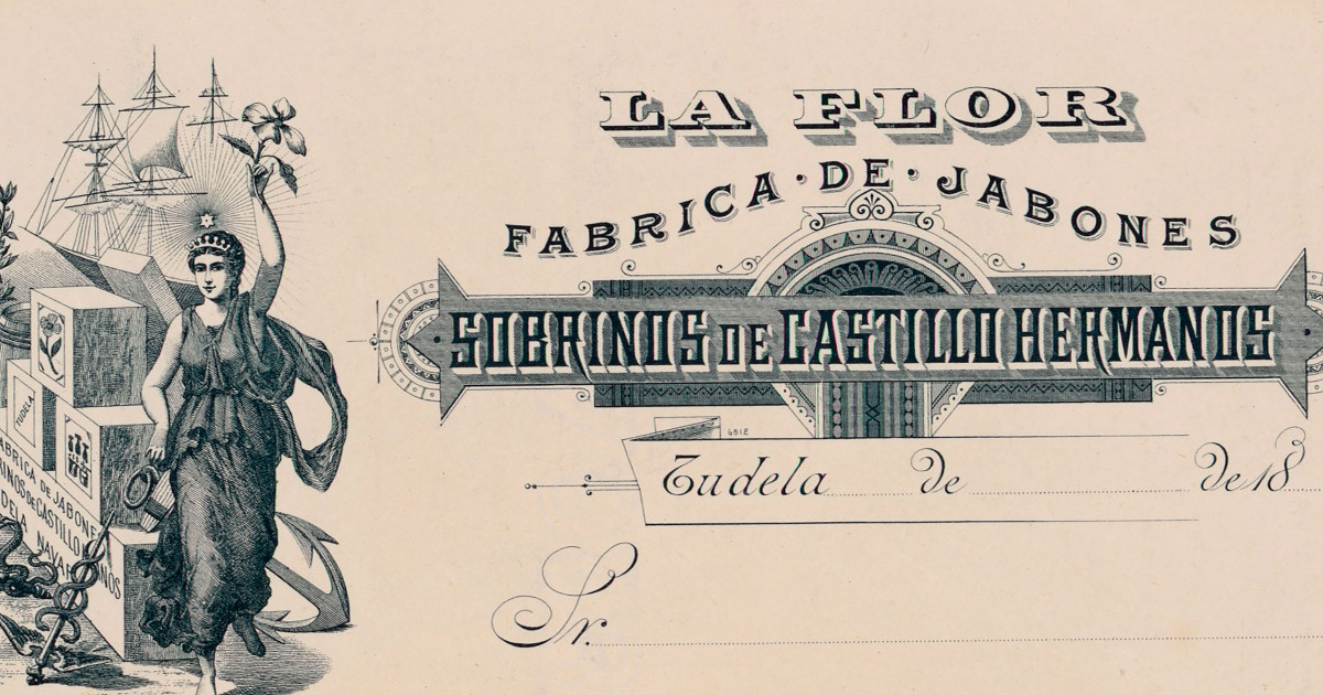 En los encabezamientos aparecen impresos datos como el nombre de la empresa, la dirección y teléfono y otros como los premios conseguidos, si son proveedores de la Casa Real o cuestiones legales en cuanto a posibles reclamaciones.
