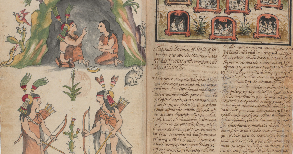 El autor utiliza la imagen como en las relaciones pictográficas precortesianas. Las primeras escenas llenas de simbología, nos hablan de cómo se gestó el nacimiento de México. También da a conocer la organización de la sociedad mexicana existente a la llegada de los conquistadores a través de su narración, precedida en cada capítulo por imágenes y comentarios. Durán intercala sus comentarios, estableciendo un diálogo con las imágenes.