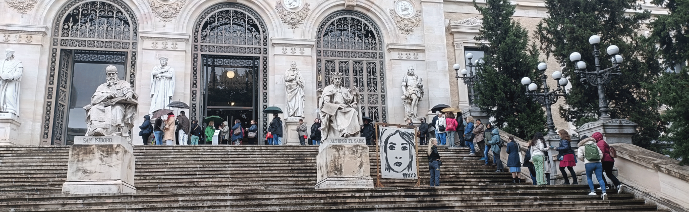 Desde las 8.00 de la mañana los más madrugadores hacían cola en la puerta de la sede del Paseo de Recoletos para conocer de cerca los tesoros, actividades y estancias de la Biblioteca. A las 8.45 se empezaron a repartir las entradas y a las 9 entraba el primer grupo. Cada 5 minutos un grupo de 25 personas accedió a la BNE en dos itinerarios paralelos. La lluvia y el viento no desanimaron al público que guardaba la fila de manera ordenada y la jornada transcurrió en un ambiente festivo y sin incidencias. Las 1.200 entradas previstas se agotaron sobre las 12.30 de la mañana. A la salida, se repartieron claveles a los que terminaban la visita, que los recibían con sonrisas y palabras de agradecimiento.
