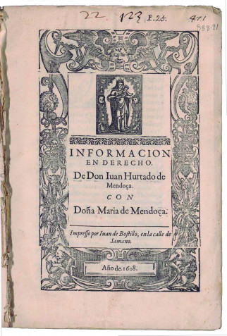 Informacion en derecho de Don Iuan Hurtado de Mendoça. Con doña Maria de Mendoça.